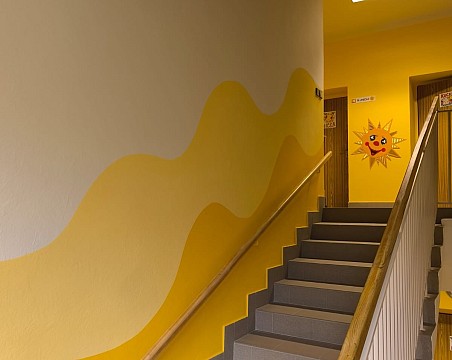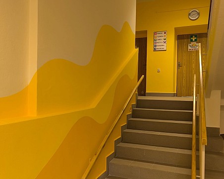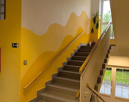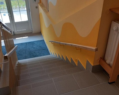 Stará podlaha byla stržena a místo ní byly položeny nové dlaždice. Poté následovala výmalba schodiště a nátěry zábradlí a radiátorů. Děkujeme firmě Martin Jančík za krásnou podlahu, firmě Martin Motl za výmalbu nového schodiště a pedagogům za návrh na netradiční výmalbu. Celé prostředí se příjemně zútulnilo a ocenili ho nejen zaměstnanci, ale i rodiče a děti.