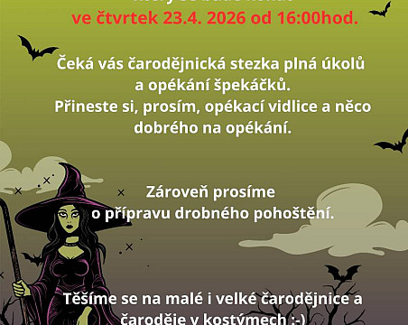 Čeká vás čarodějnická stezka plná úkolů a opékání špekáčků.